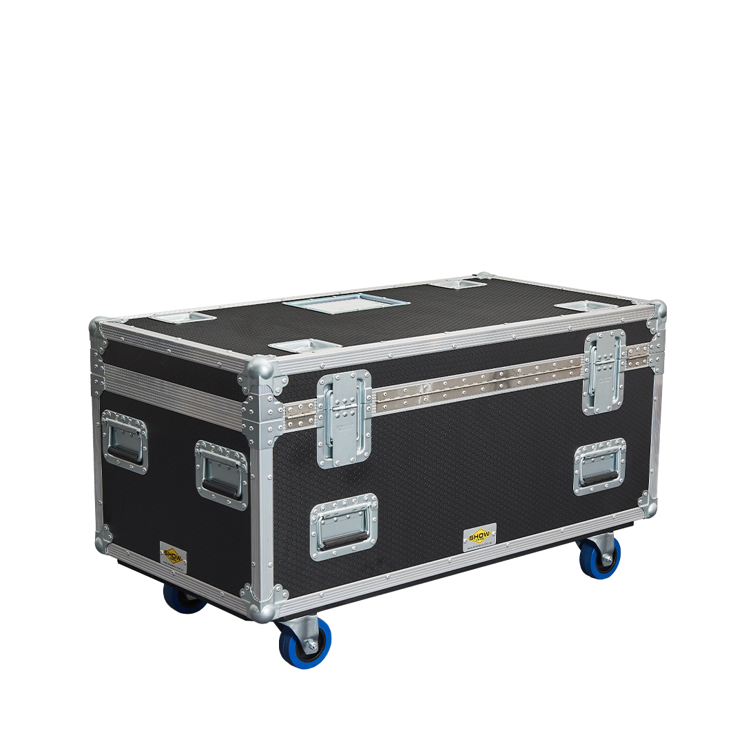 Showcase LED 008 Can Case with Castors designed to house 8 can fixtures. Fully equipped with Penn-Elcom hardware, laminated with a 12mm Ply Black Hexa Pattern. Penn-Elcom hardware as follows: