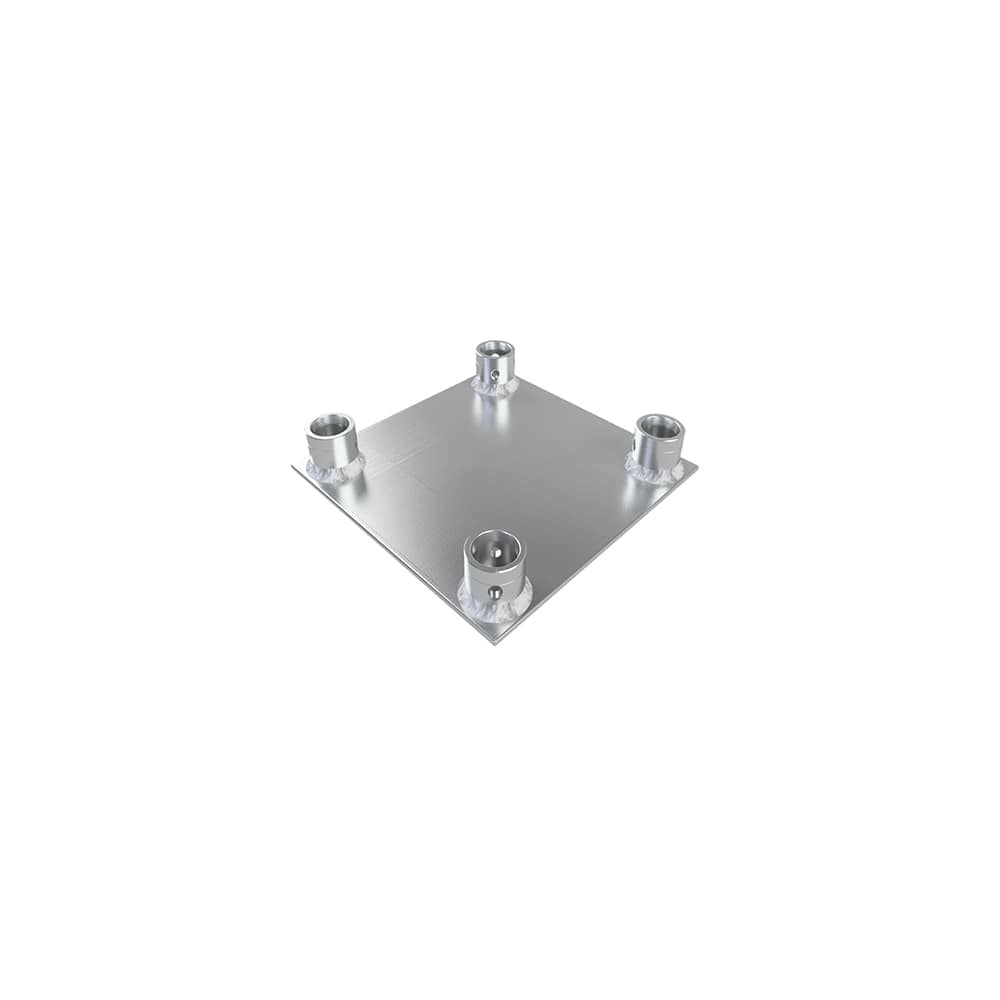 For each Truss System Eurotruss supplies a baseplate. The baseplate is an aluminum plate with fixed welded receivers on it. The plate is for HD System 6mm thick and for heavier truss systems 8~10mm thick. A baseplate can also be used as a wall plate or end plate.