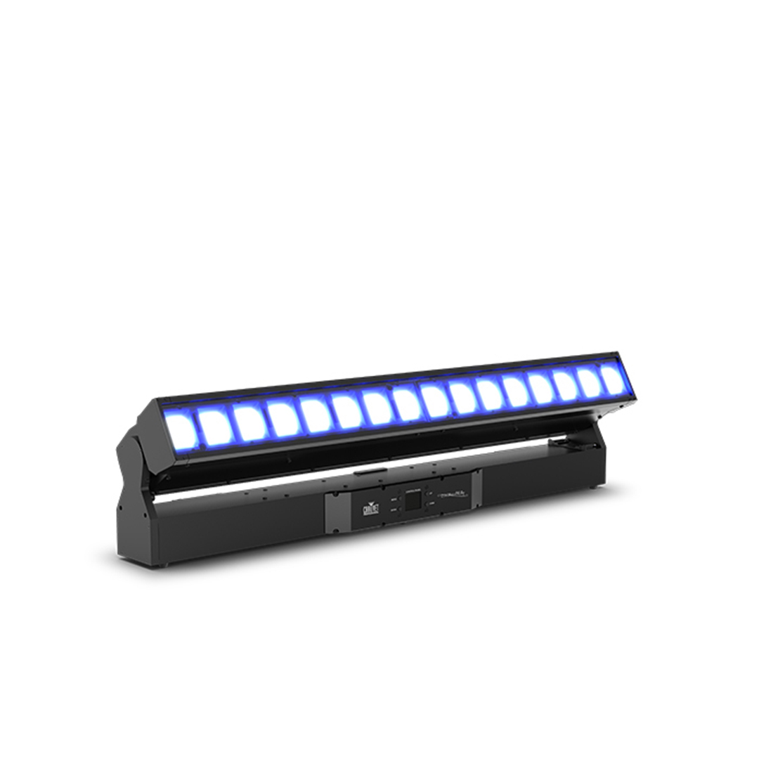 - IP65-rated motorized tilting batten with (16) 45 W RGBW LEDs with a 5.8 ° to 47.9° zoom range, maintains pixel pitch between fixtures.