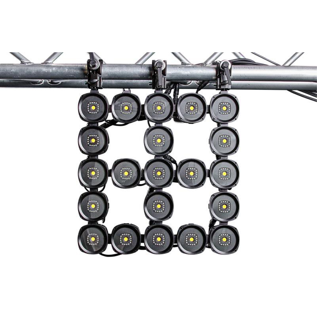 The KNV has an immense output when combining its elements, with each Dot unit capable of producing 2,000 lumens, and a full size KNV Cube producing more than 50,000 lumens. Utilizing its power to the max, the fixture has been designed to output continuously at full output. Creating the brightest blinder and wash light effects, without ever thermalling out or reducing its output level.