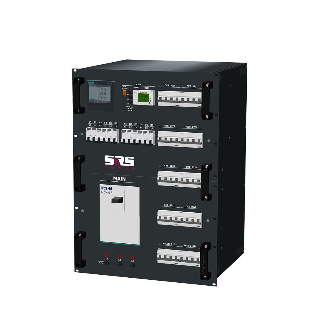 - 8x 32Amp Ceeform 3 Phase outlets with RCBO Breakers.