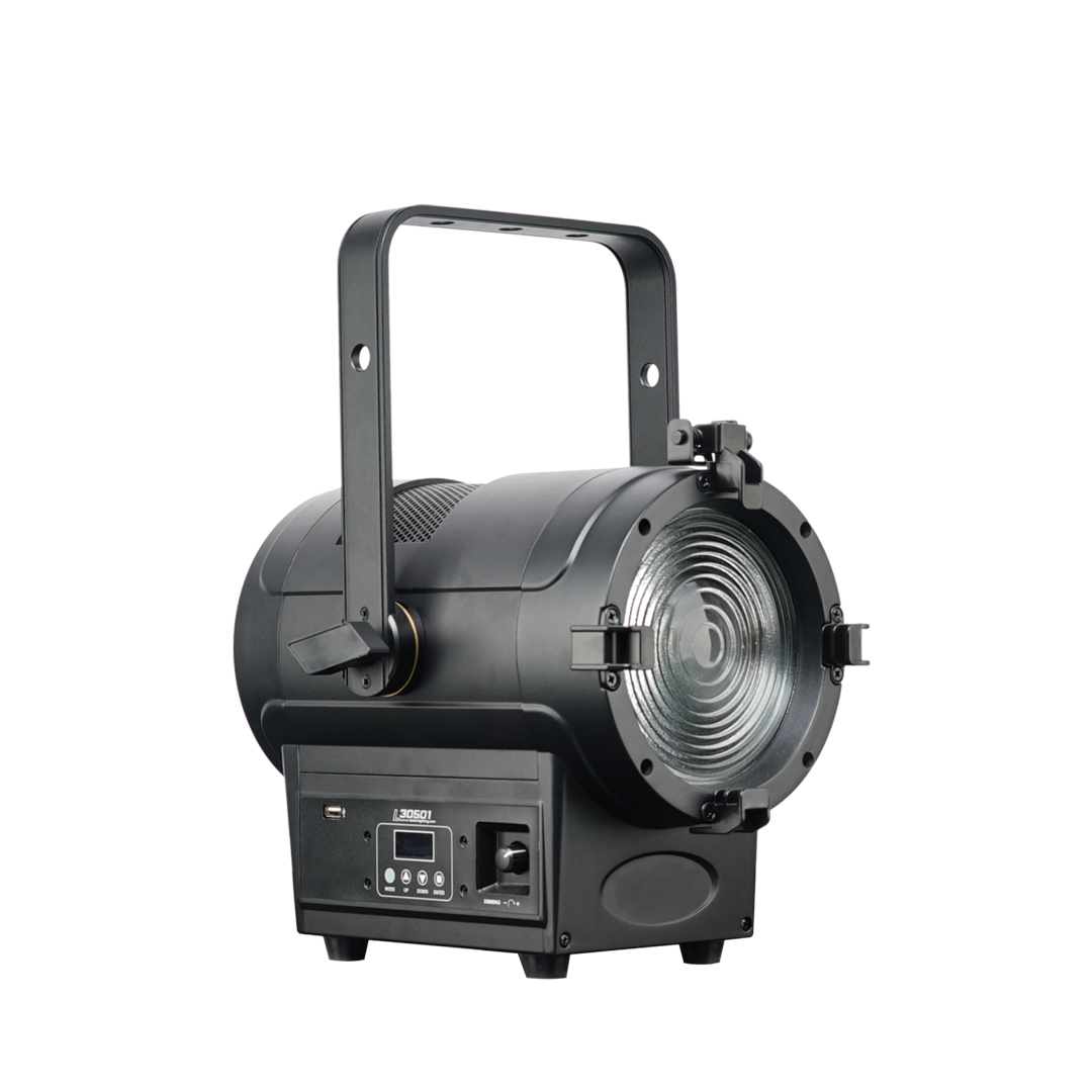 TourPro presents the Studio Fresnel WW with a 150w Warm White LED chip and manual zoom for easy spot – flood focus adjustment. Delivering Soft edge beam with a continuous variable 15º – 38º angle. The Studio Fresnel WW has a high CRI of 95 and multiple in built dimming curves making it the ideal LED replacement for a wide number of applications